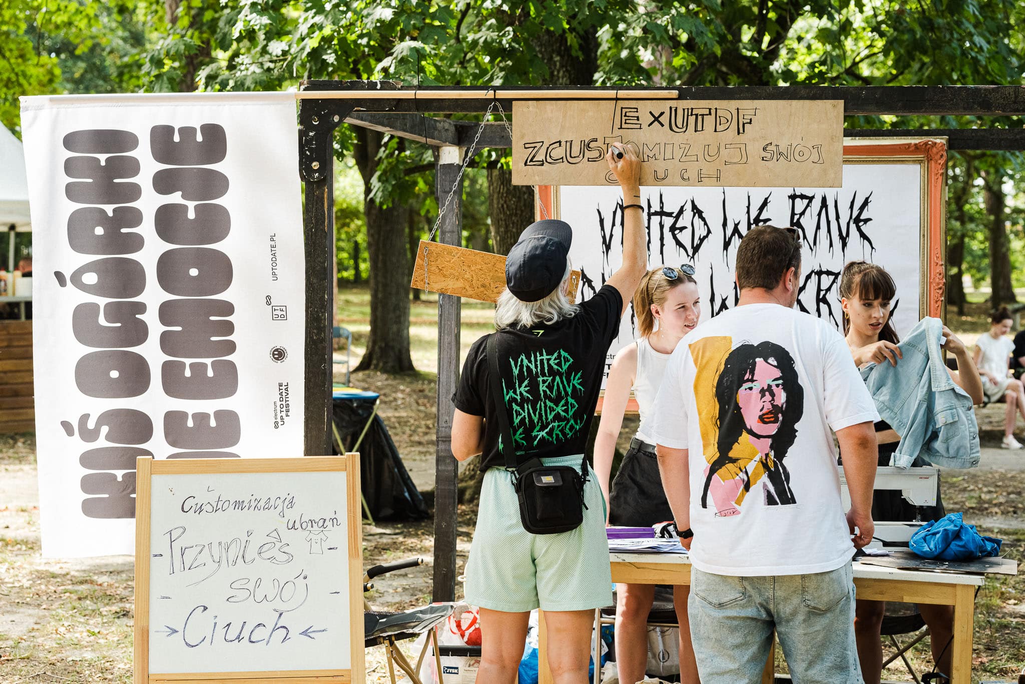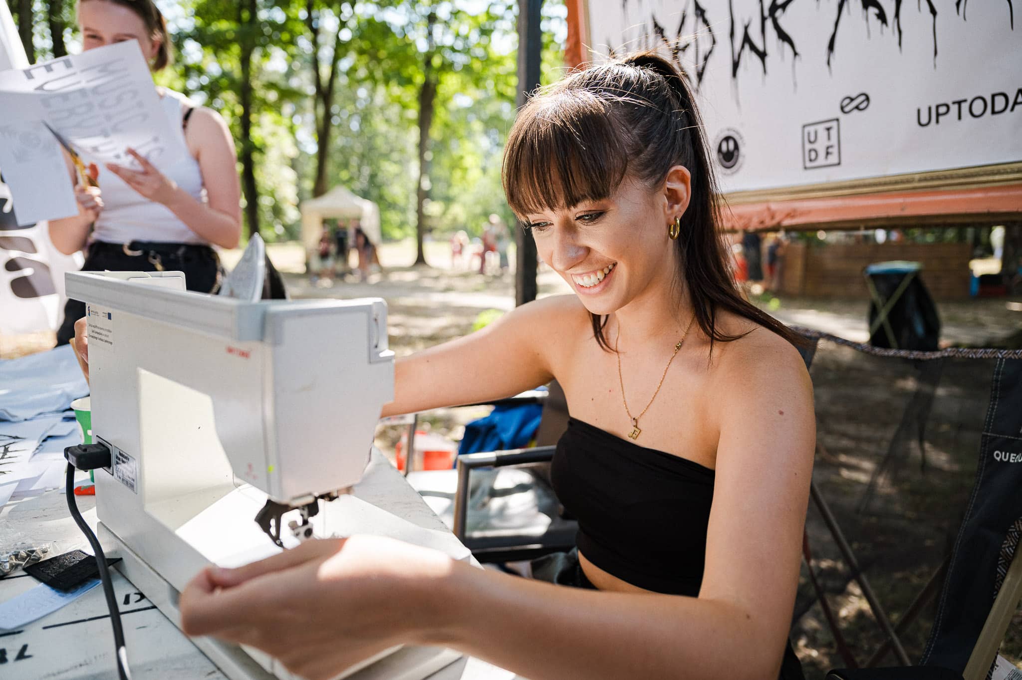 Jednak muzyczny temat przewodni w żadnym stopniu nas nie ograniczał – atrakcje obejmowały również inne środki artystycznego wyrazu. Ogromnym zainteresowaniem cieszyły się warsztaty z upcyklingu, w ramach których dzieci mogły stworzyć własny stolik bądź stołek, korzystając z materiałów z obiegu wtórnego. Upcykling to dziedzina, która oddziałuje zarówno na kreatywność, jak i na środowisko – uczy szukania nowych rozwiązań w starych zasobach i troski o planetę. Nadprodukcja, z którą globalnie mierzymy się od dziesiątek lat, jest problemem wartym zaadresowania nawet małymi działaniami. Chcemy zaszczepiać w najmłodszych chęć do wychodzenia poza schemat – stąd kolejna odpowiadająca na problem nadprodukcji aktywność, czyli warsztaty z personalizacji odzieży. Własnoręczne tworzenie naprasowanek, malowanie, szycie i możliwość skorzystania z pomocy ekspertów z UTDF pozwoliło na rozwinięcie umiejętności artystycznych i dyskusję o odmienianiu odzieży, którą już posiadamy. Kolejkom nie było końca!