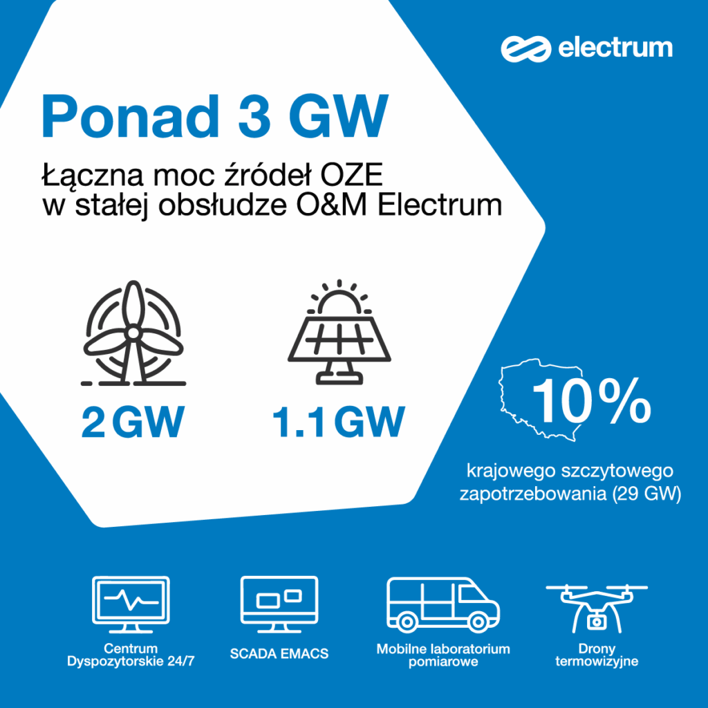Portfolio źródeł OZE, którymi zarządzamy w ramach usług O&M, przekroczyło 3 GW mocy. To bardzo wymierny wkład w bezpieczeństwo energetyczne Polski – odpowiadamy za utrzymanie potencjału produkcyjnego równego ponad 10% krajowego szczytowego zapotrzebowania. Nasz zespół codziennie dba o optymalną pracę farm wiatrowych i fotowoltaicznych, wykorzystując zaawansowane autorskie narzędzia i analitykę predykcyjną.